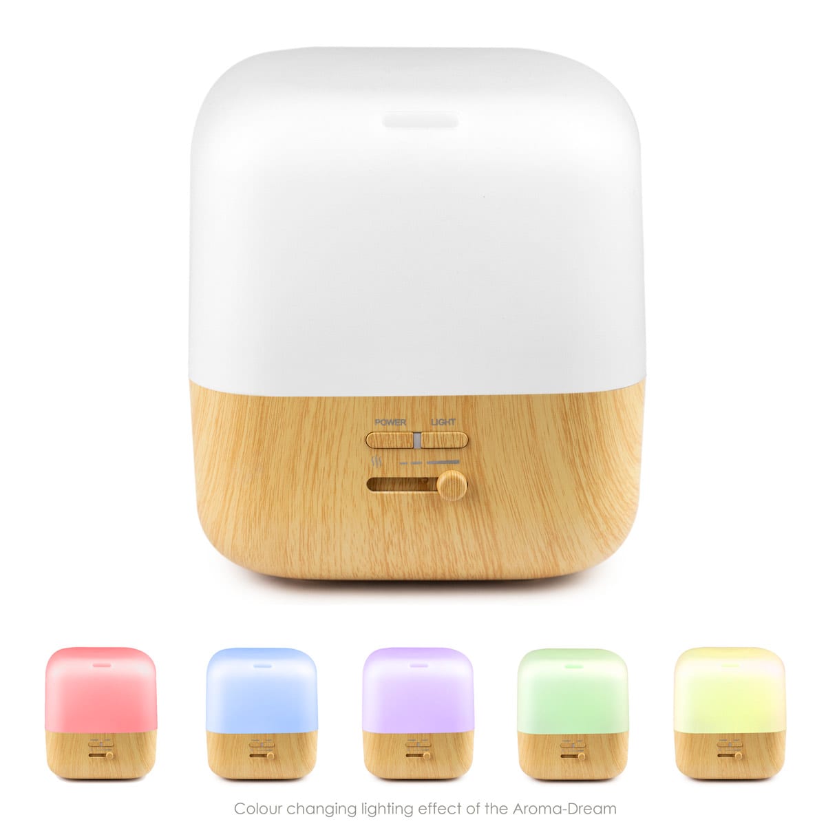 Please Note: The Aroma-Dream is available in one colour choice, which has a white lid. However, when the colour changing lights are activated, the light shines through the lid producing a lovely light glow. Any pictures displayed with a different colour lid, were taken with the light on. The light will cycle through many shades of colours, or can be set at the colour you choose.