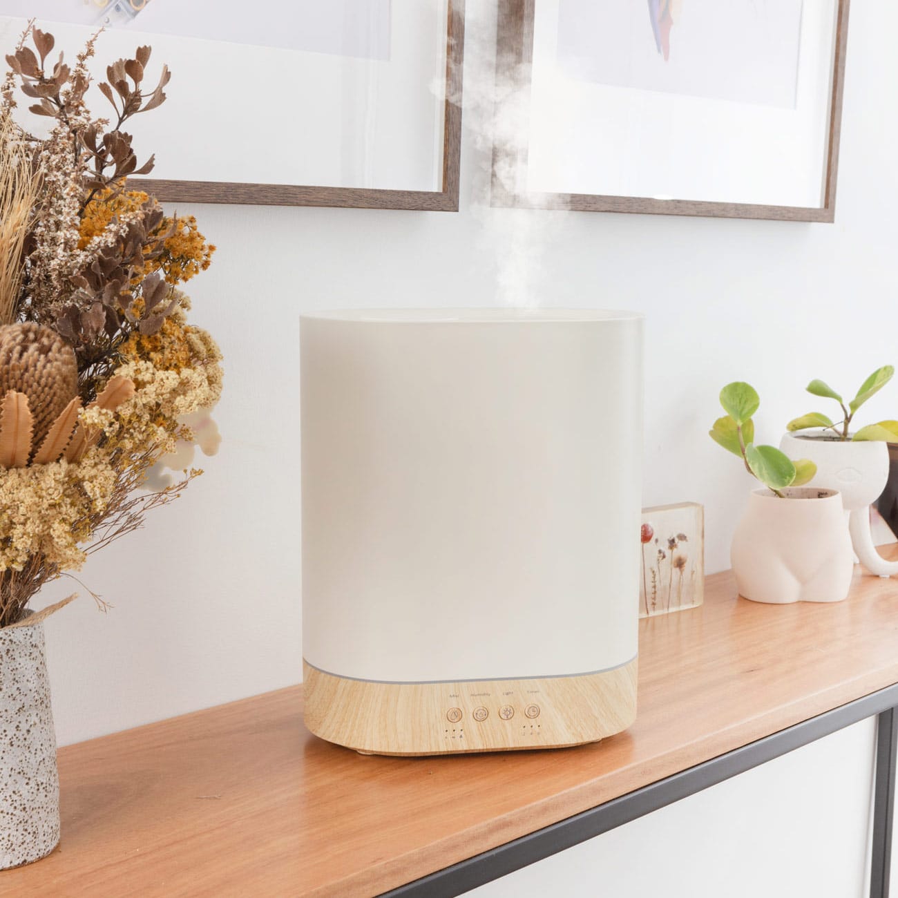 The Aroma-Haven uses advanced ultrasonic technology which vibrates the water at 2.4million hertz per second to immediately turn water to a fine vapor and that is released into the atmosphere, travelling up to 250m2. The Aroma-Havens, the smart humidifier technology will automatically pause and resume the mist as required., creating the perfect air environment year round,