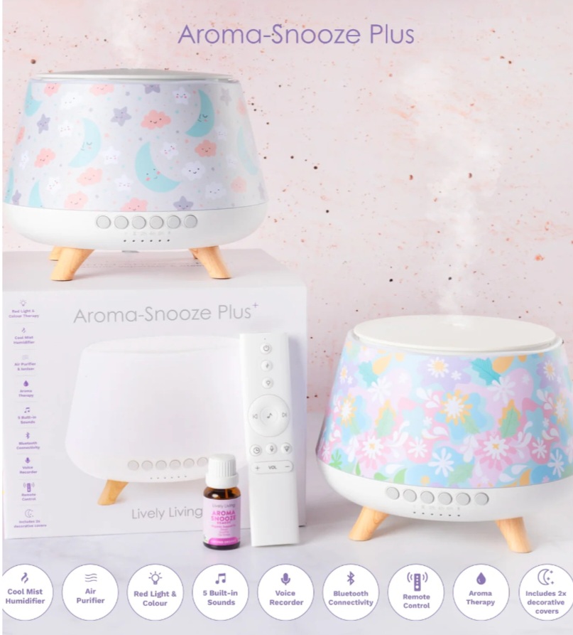 Say goodbye to restless nights & sniffles, and hello to sweet dreams and wellness, with the NEW Aroma-Snooze Plus. This revolutionary humidifier is a highly advanced sleep aid that incorporates multiple features to promote restful deep sleep and overall wellbeing.