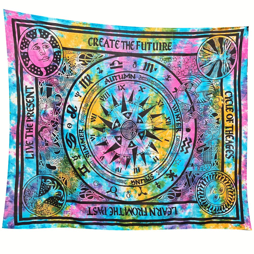 Product Description Cycle of The Ages Printed Cotton Wall Hanging/Bedspread/Throw Double Size (Approx 210cm x 235cm).