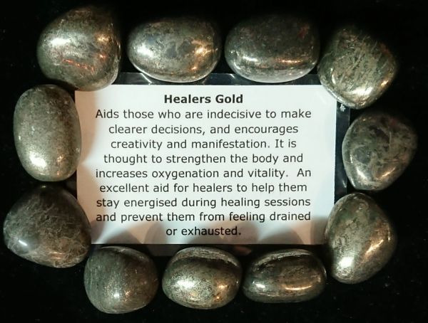 We will intuitively choose one Healers Gold Tumble Stone and cleanse it in our Crystal Quartz Singing Bowl all ready to be sent to you for use.