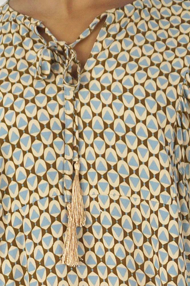 The Maddie Dress is a perfect addition to your collection & will have u looking and feeling fabulous in this style. Featuring a tie up V-neckline, easy fitting fall and elastic around the sleeves.