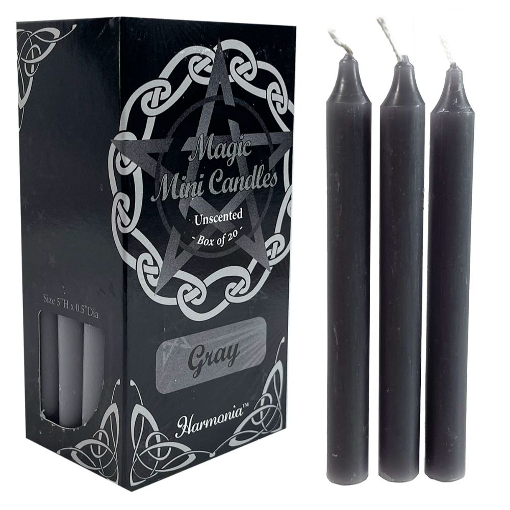 Product Description MAGIC MINI CANDLES - Grey Unscented 1.25cm x 12.7cm (20pk) Perfect for Spell Work and your Altar.
