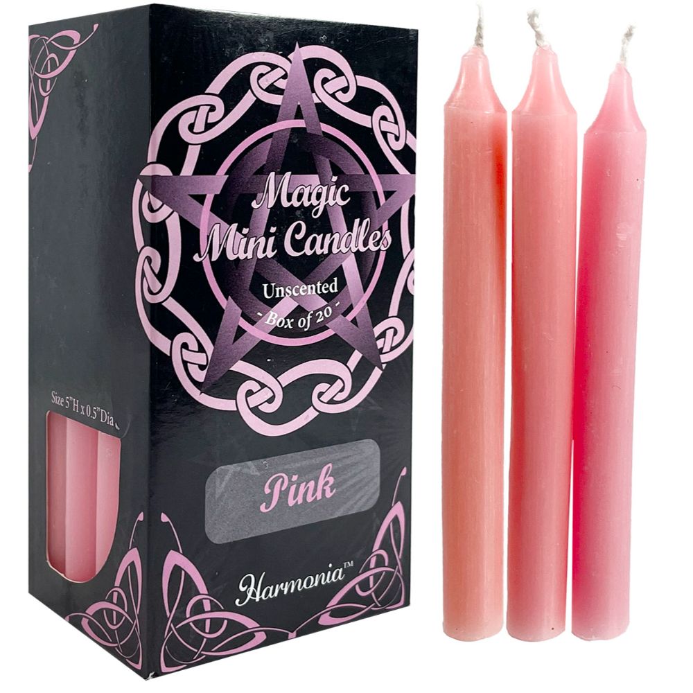 Product Description MAGIC MINI CANDLES - Pink Unscented 1.25cm x 12.7cm (20pk) Perfect for Spell Work and your Altar.