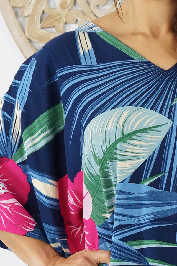 This gorgeous light rayon Kaftan fits sizes 10-26 comfortably. It features side splits on the bottom. Finished length is approximately 125cm.