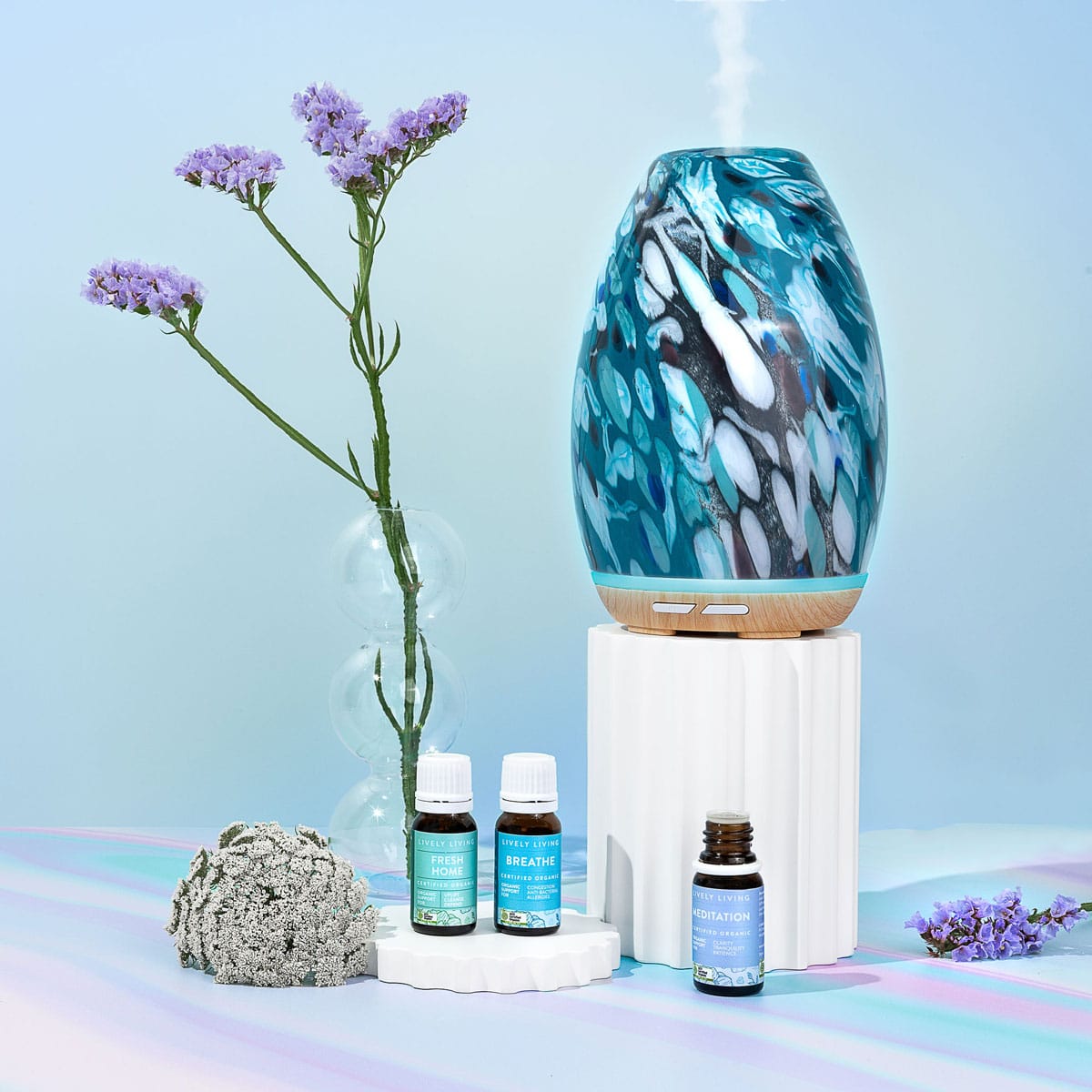 - Diffuse essential oils through out your home and work, and enjoy the wide benefits gained from aromatherapy, while also purifying the air you breathe. With advanced cool mist technology, Lively Living Aroma-Swish diffusers allow you to disperse your favourite essential oils through the room safely, and without heat.