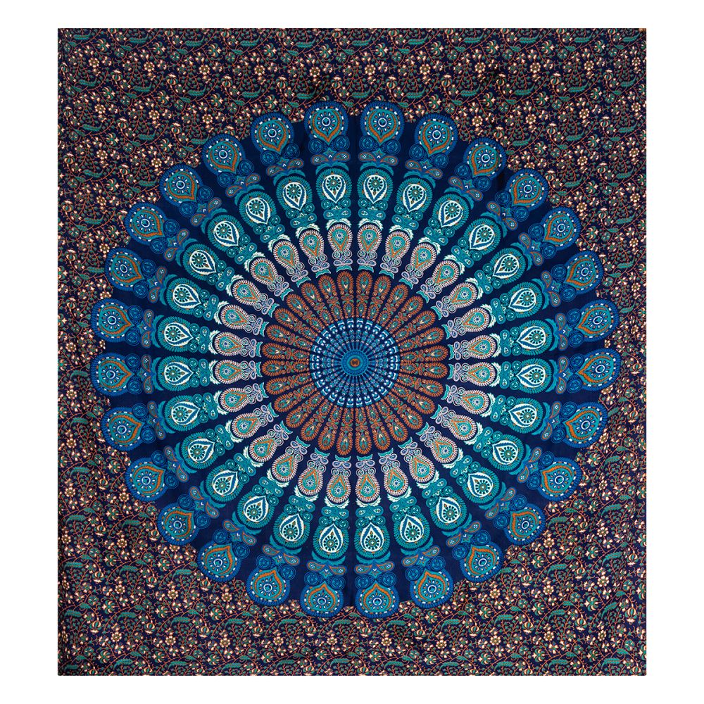 Product Description Peacock Mandala Blue Printed Cotton Wall Hanging/Bedspread/Throw Double Size (Approx 210cm x 240cm).